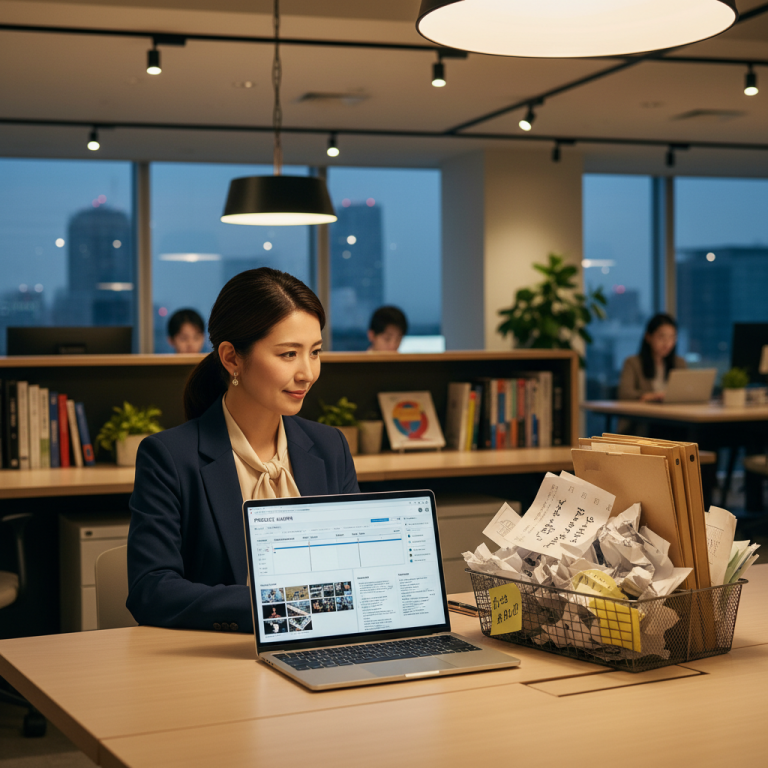進捗確認・報告資料・議事録整理に追われ、戦略判断の時間が取れないPM向け。ChatGPTを使った進捗レポート自動生成・リスク検出・タスク抽出の具体的なワークフローを紹介します。